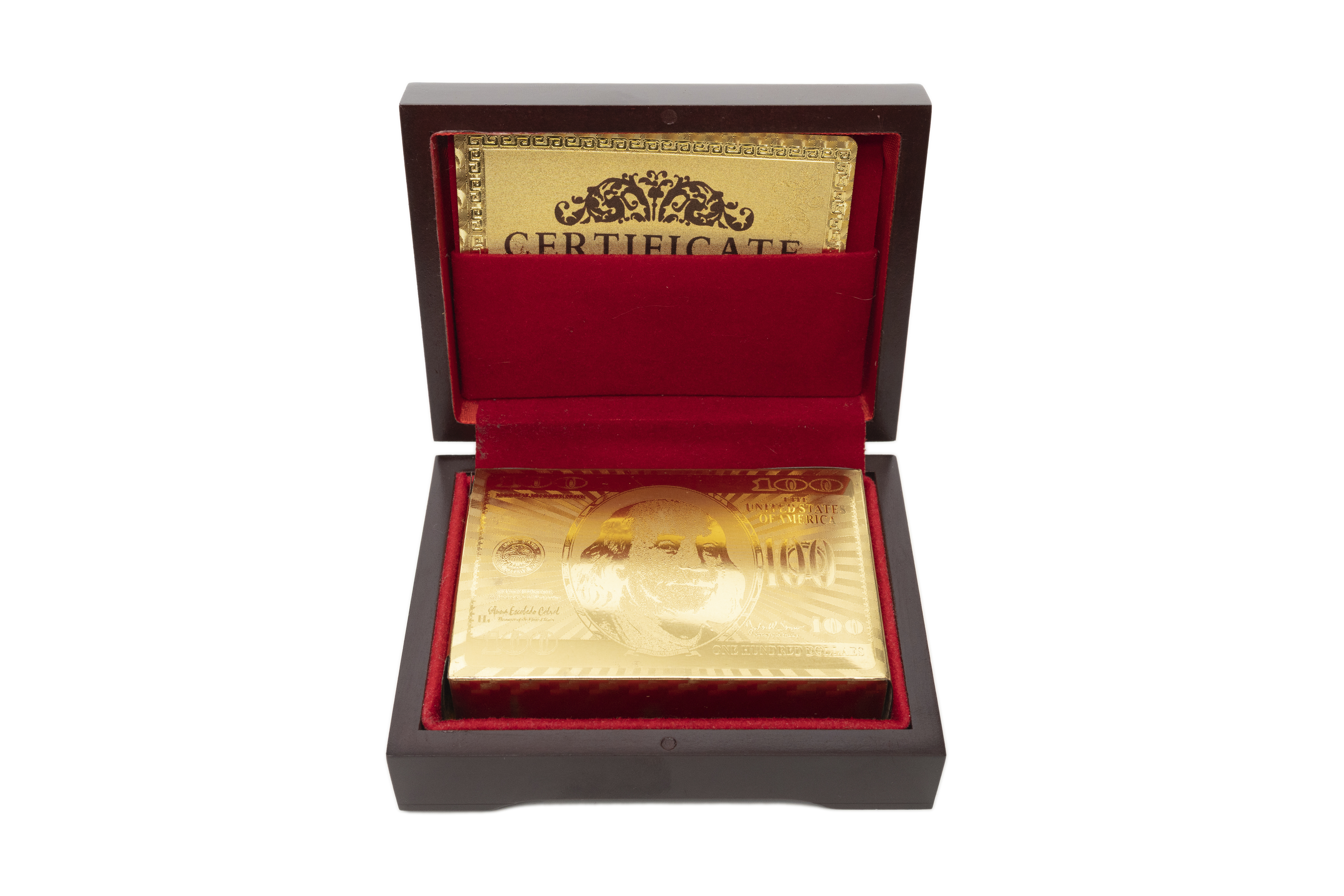 Подарочный набор позолоченных игральных карт в деревянной шкатулке, станет интересным и необычным подарком на любой праздник.